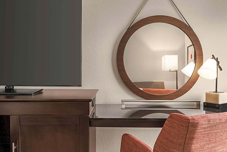A 42-inch flat-screen TV, a desk, and a sofa bed are included in this king study. A coffee machine, refrigerator are provided as well.